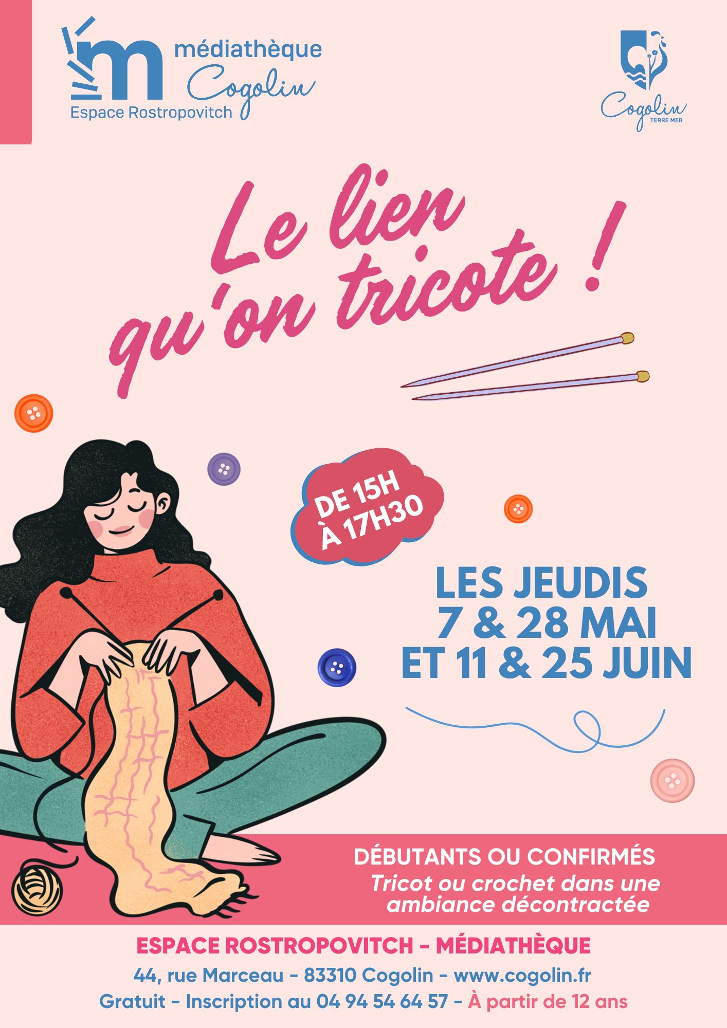 Vous souhaitez passer un après-midi créatif ? Rejoignez-nous à la médiathèque pour l’atelier « Le lien qu’on tricote » ! Que vous soyez débutant ou confirmé, venez partager un moment de détente autour du fil et des aiguilles.
