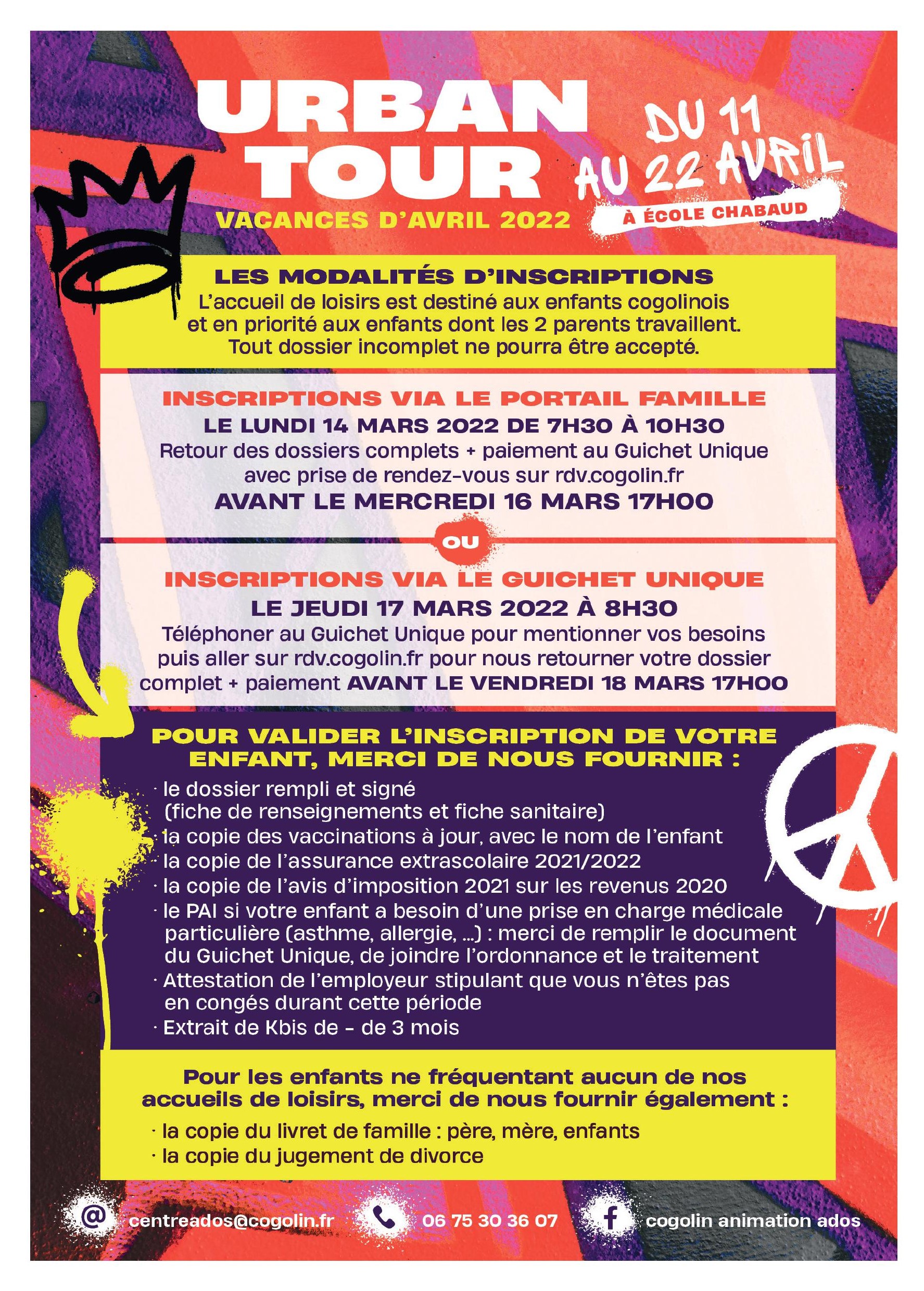 Les dossiers d’inscription et tous les renseignements sont disponibles sur le portail familles
