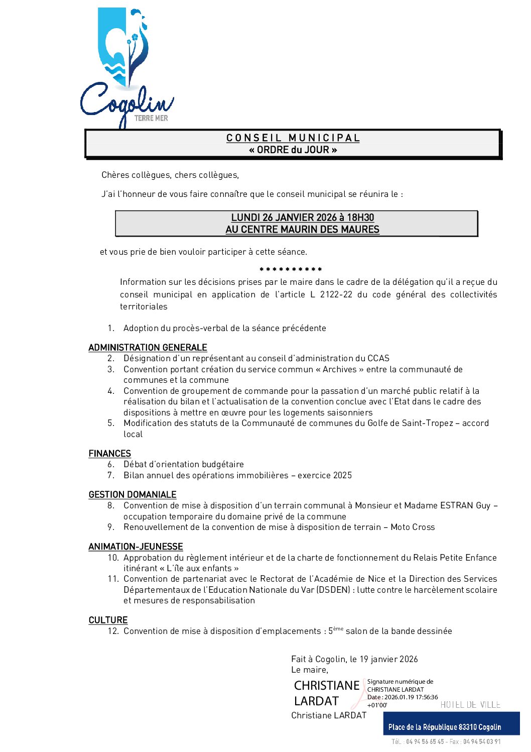 Lundi 26 janvier – Conseil municipal