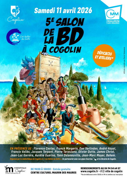 Organisé par la médiathèque de Cogolin et « Les Bulles du Golfe ». En partenariat avec Les pipes Courrieu et la librairie de Cogolin.