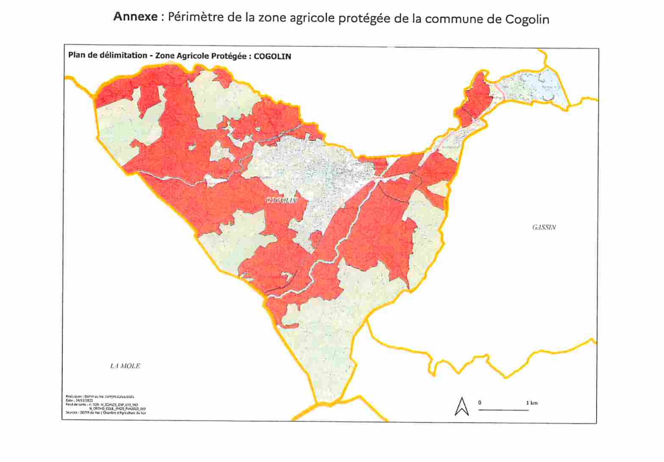 Par arrêté préfectoral en date du 15 décembre 2025, une zone agricole protégée (ZAP) a été officiellement créée sur le territoire communal de Cogolin.